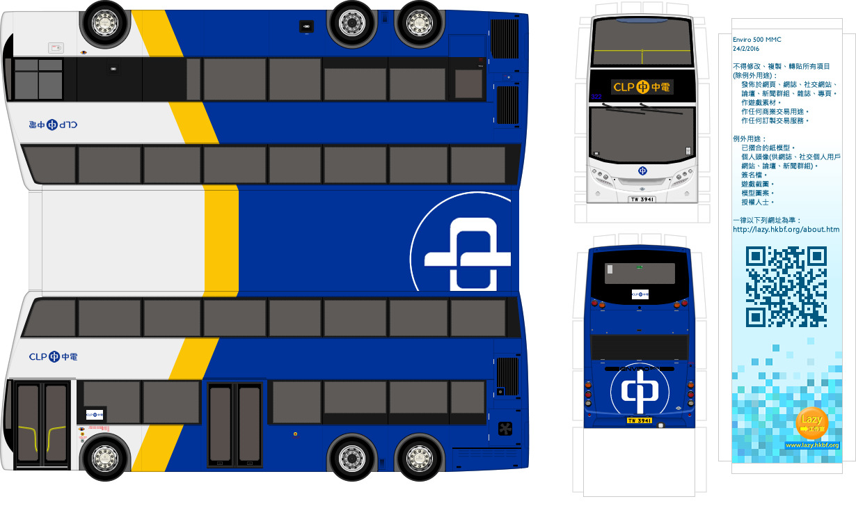 | Enviro 500 MMC | 322 | 中華電力 | N/A |